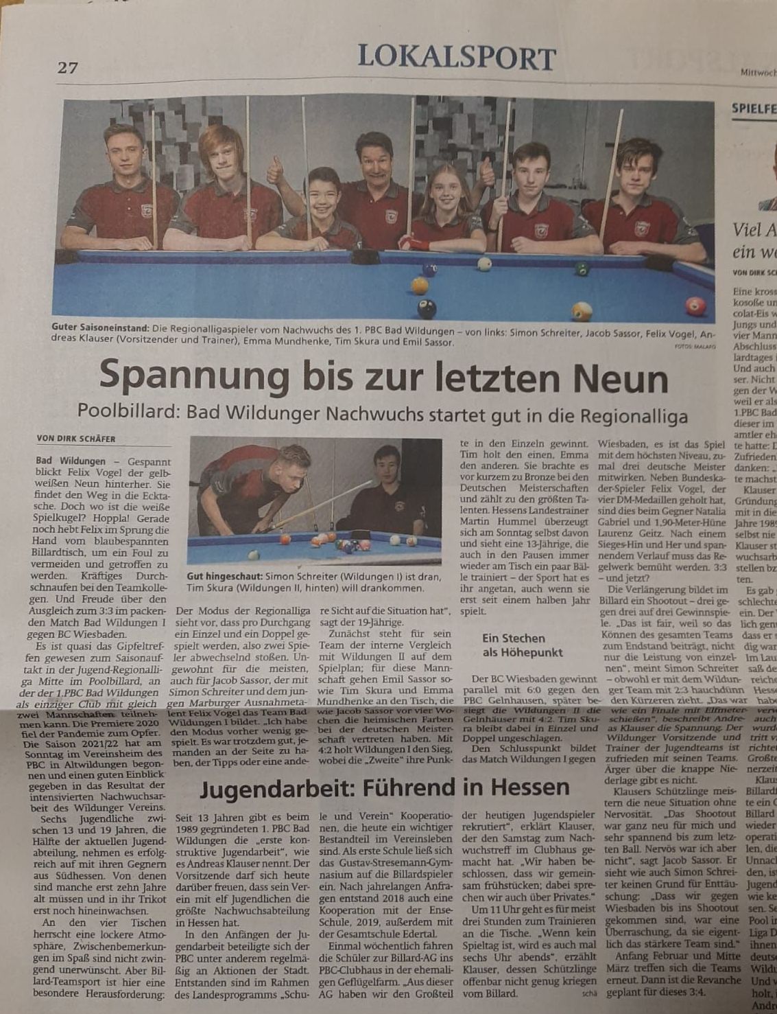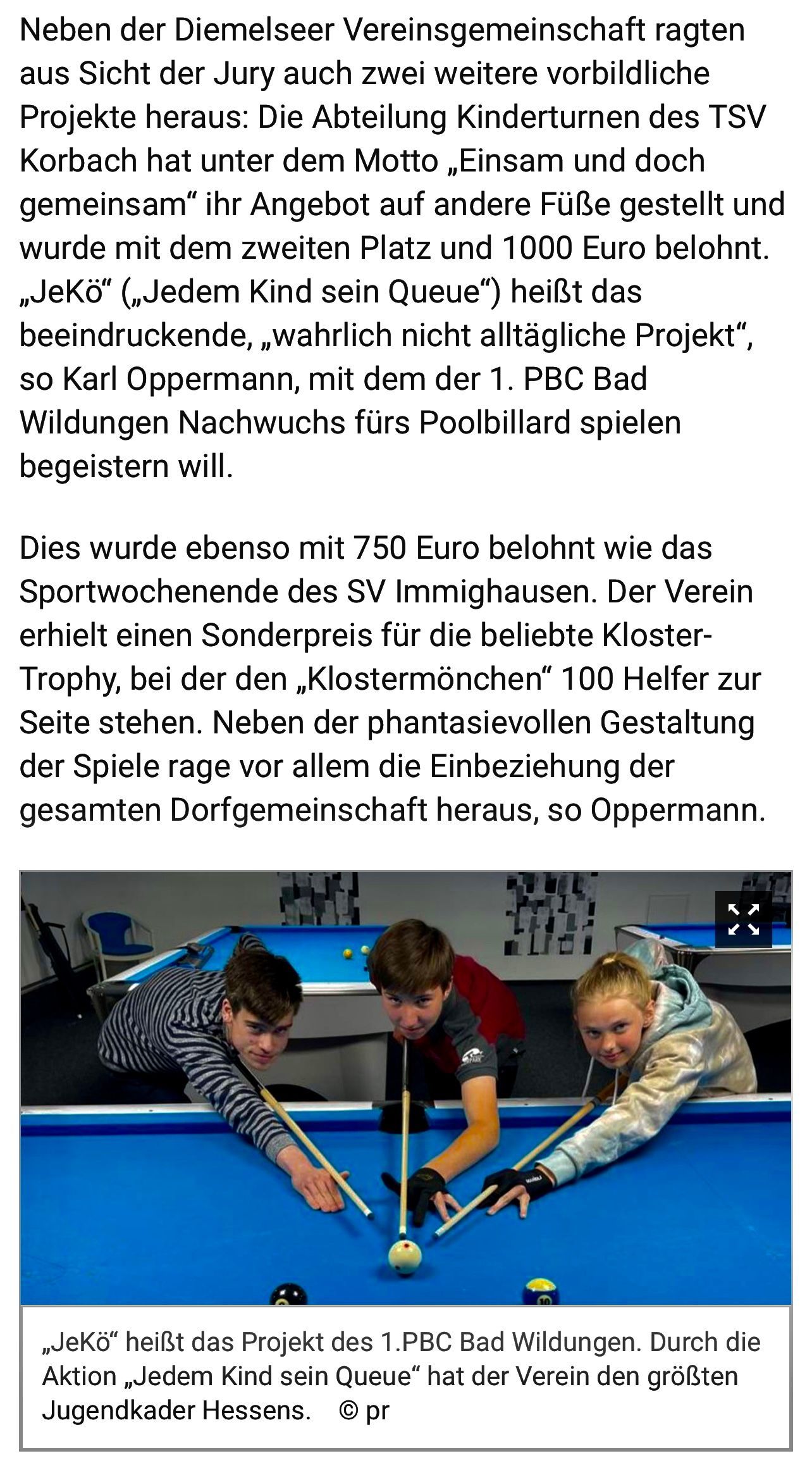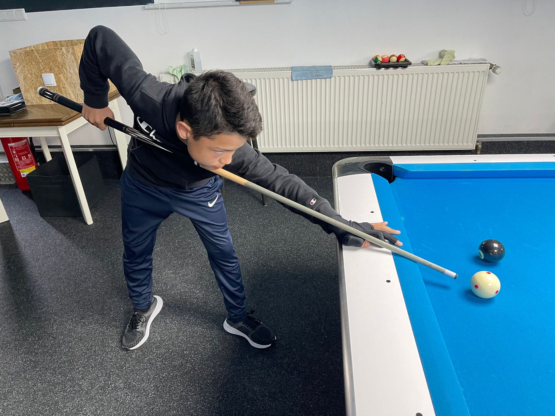 Nik Galković, young Serbian billiard talent and member of the Serbian Billiards Association, thanks the team of 1. PBC Bad Wildungen for their support through the “JeKö Reloaded” project.
