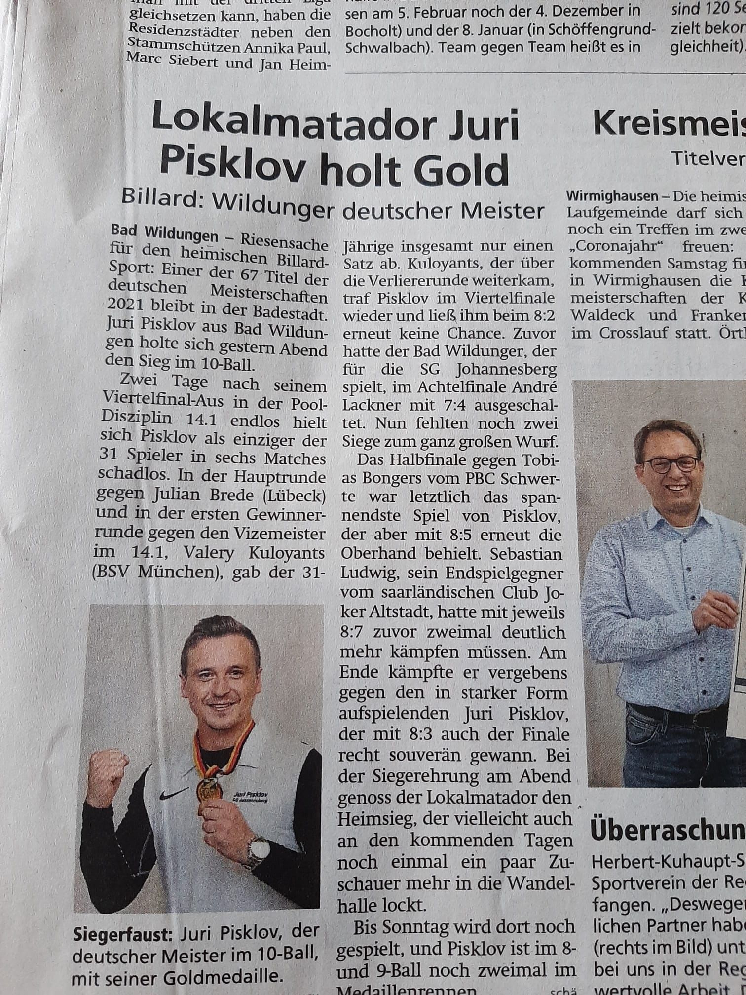 Deutsche Billard-Meisterschaften starten in Bad Wildungen